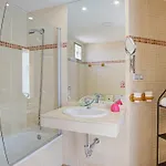 O design interior inclui sofá e mesa de trabalho e Internet de banda larga e TV. As comodidades de casa de banho incluem bidé e banheira, bem como secador de cabelo e lençóis de banho.